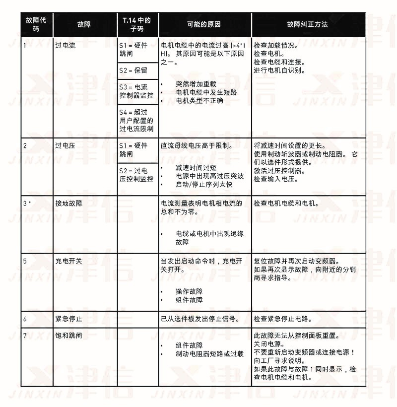 三、偉肯NX變頻器故障代碼FT14,15,16,17,18,22,24,25,26,29,30,31,32,33,34