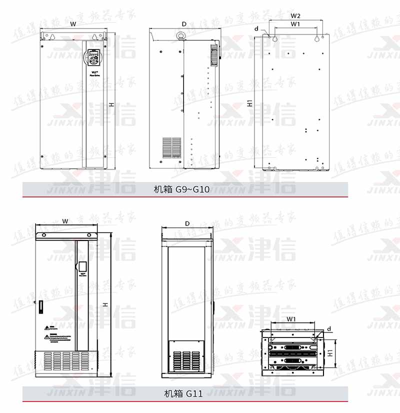 | 機(jī)箱型號 | 適配的功率范圍 (kW) | 外形尺寸 (mm) | ||||||