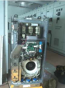 該變頻器更換逆變模塊,將板卡及電容箱依次安裝后,測試,符合上電條件。給變頻器送電,開機、輸出電壓平衡,帶負載到額定電流,變頻器發熱也正常,該變頻器修復。