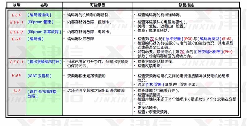 4、InFC,InFE,DCF,PrF,SCF1,SCF2,SCF3,SOF,SPF,tnF故障