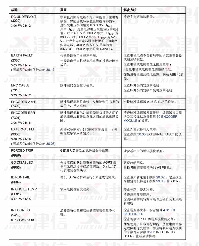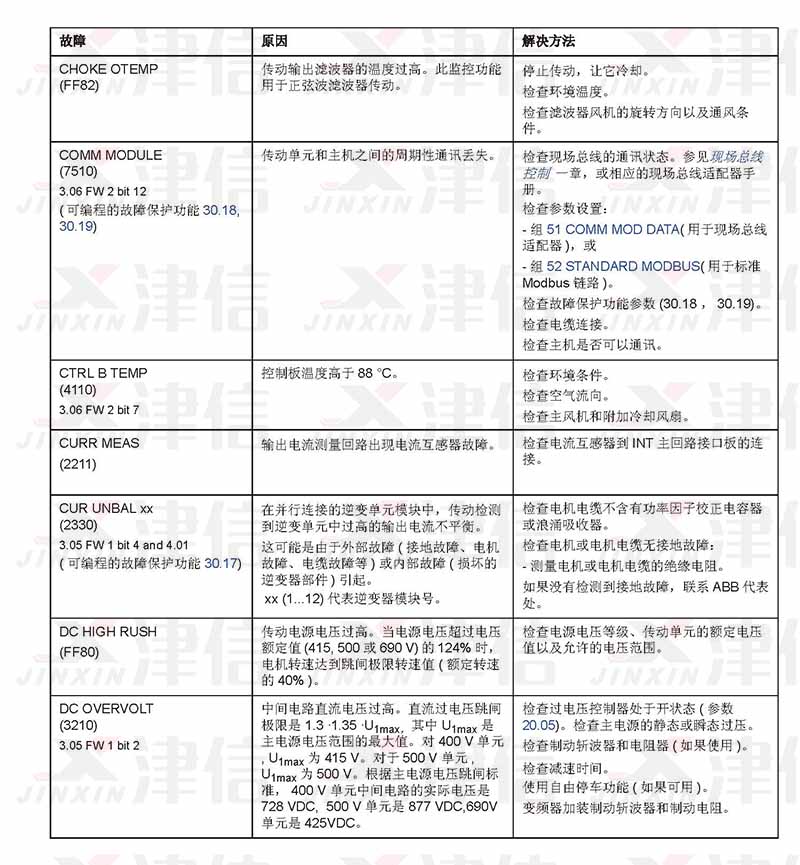 ABB ACS800變頻器故障代碼和維修措施