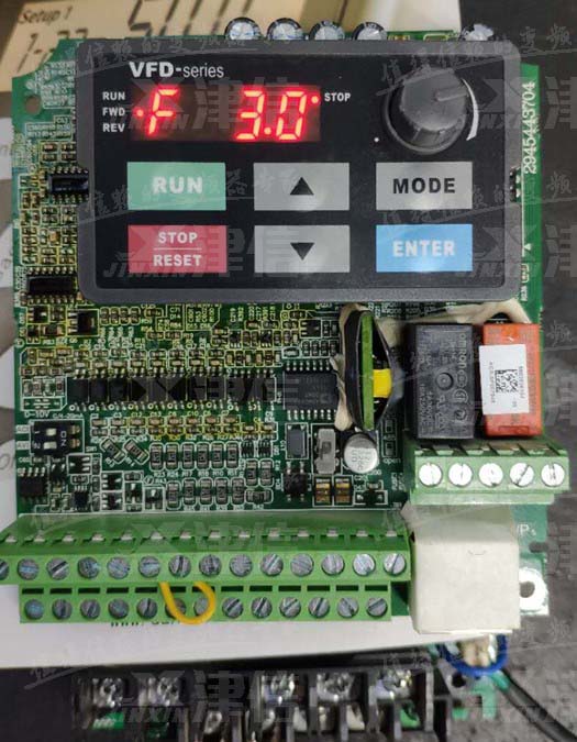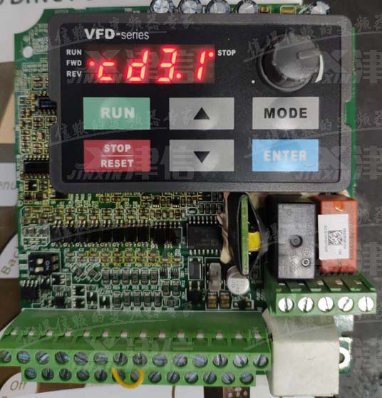 用戶送修一臺臺達(dá)C200系列變頻器到上海津信維修服務(wù)中心(如下圖1),送電顯示cd3.1(如下圖2所示),不可復(fù)位,斷電重新上電后依舊報(bào)警,查看C200系列說明書可知,該故障為W相電流偵測異常。
