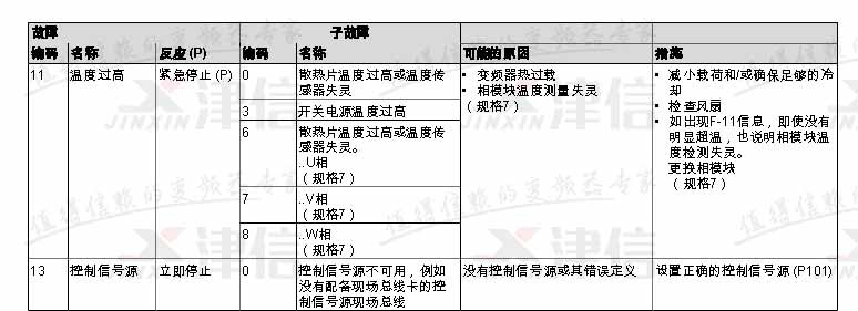 SEW變頻器故障代碼F11,F13,具體如下: