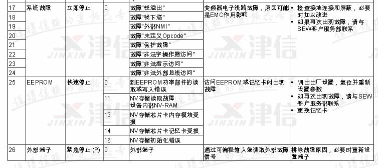 SEW變頻器故障代碼F17,F18,F19,F20,F21,F22,F23,F24,F25,F26,具體如下: