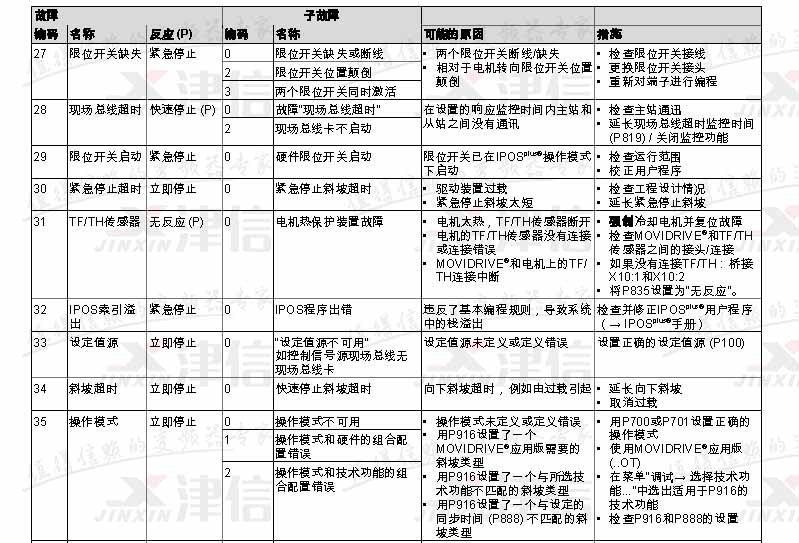 SEW變頻器故障代碼F27,F28,F29,F30,F31,F32,F33,F34,F35,具體如下: