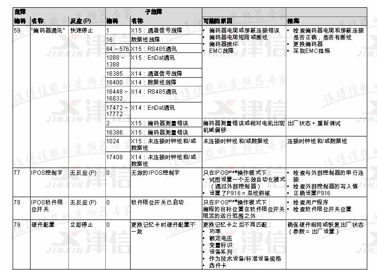 SEW變頻器故障代碼F59,F77,F78,F79,具體如下: