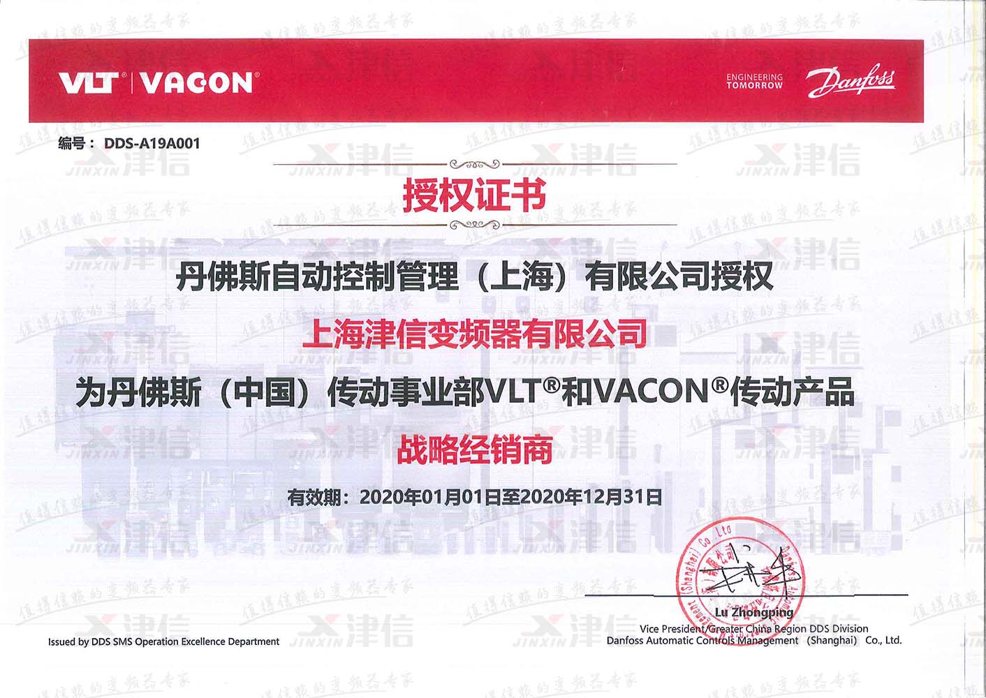 丹佛斯傳動戰(zhàn)略經銷商上海津信授權證書